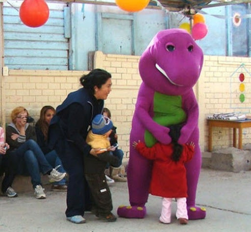 5. Nesta foto exclusiva o dinossauro roxo foi pego em flagrante e acusado por tentativa de homicídio, ao tentar matar uma de suas amigas.